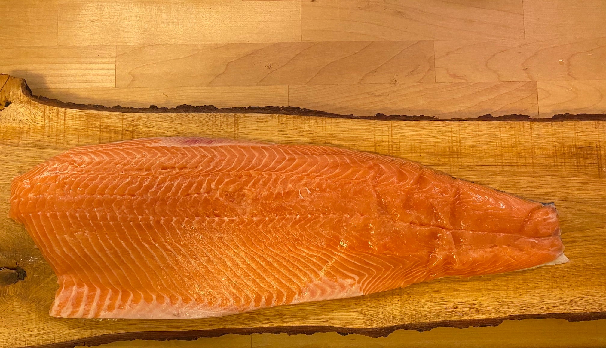 Am Besten ist es, wenn man eine Lachseite kauft die ca. 1 kg schwer ist.