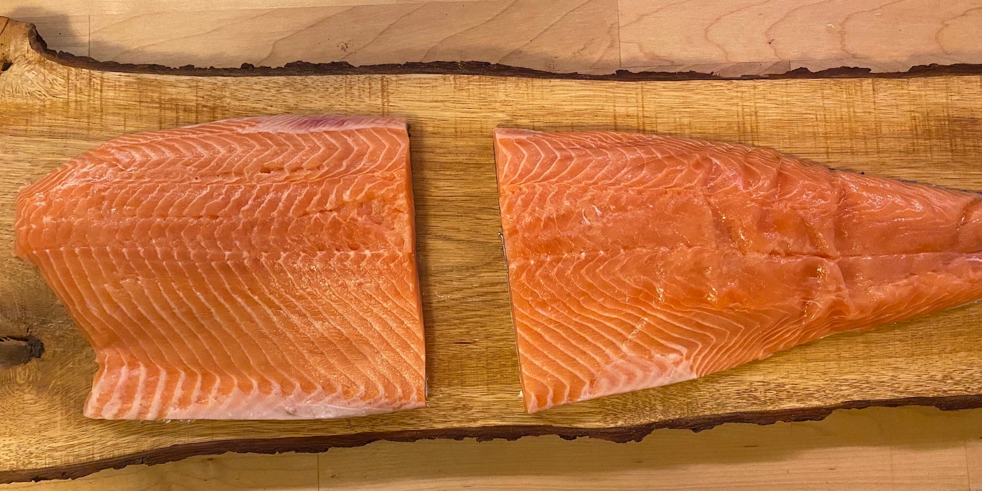 Den Lachs in 2 Teile schneiden.
