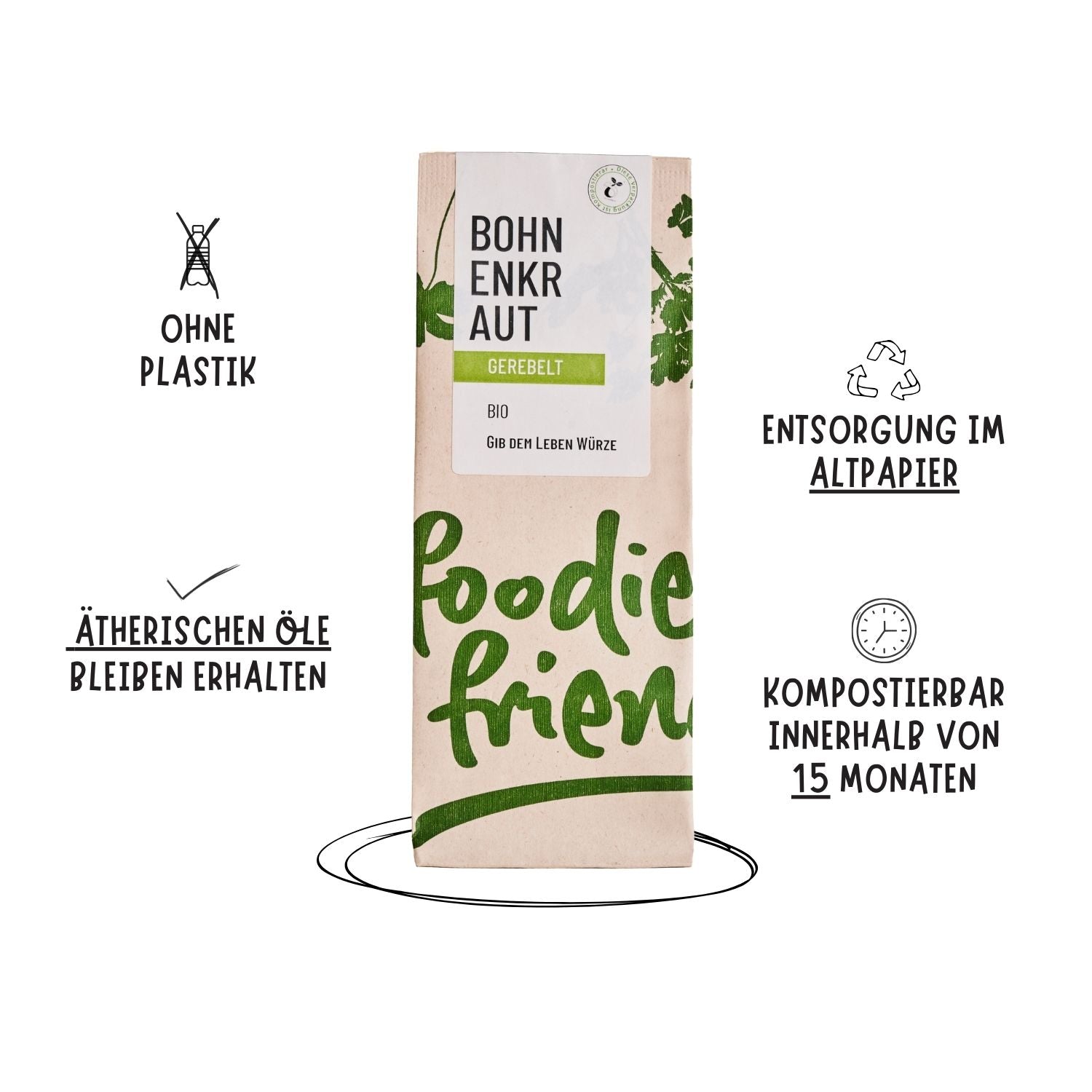 Entdecken Sie die Vielseitigkeit und den intensiven Geschmack des BIO Bohnenkrauts, gerebelt! Dieses hochwertige Gewürz stammt aus kontrolliert biologischem Anbau und verfeinert Ihre Gerichte mit einer unverwechselbaren Kräuternote. Perfekt für Eintöpfe, Suppen, Fleisch- und Gemüsegerichte – ein Muss für alle, die natürliche Zutaten lieben.