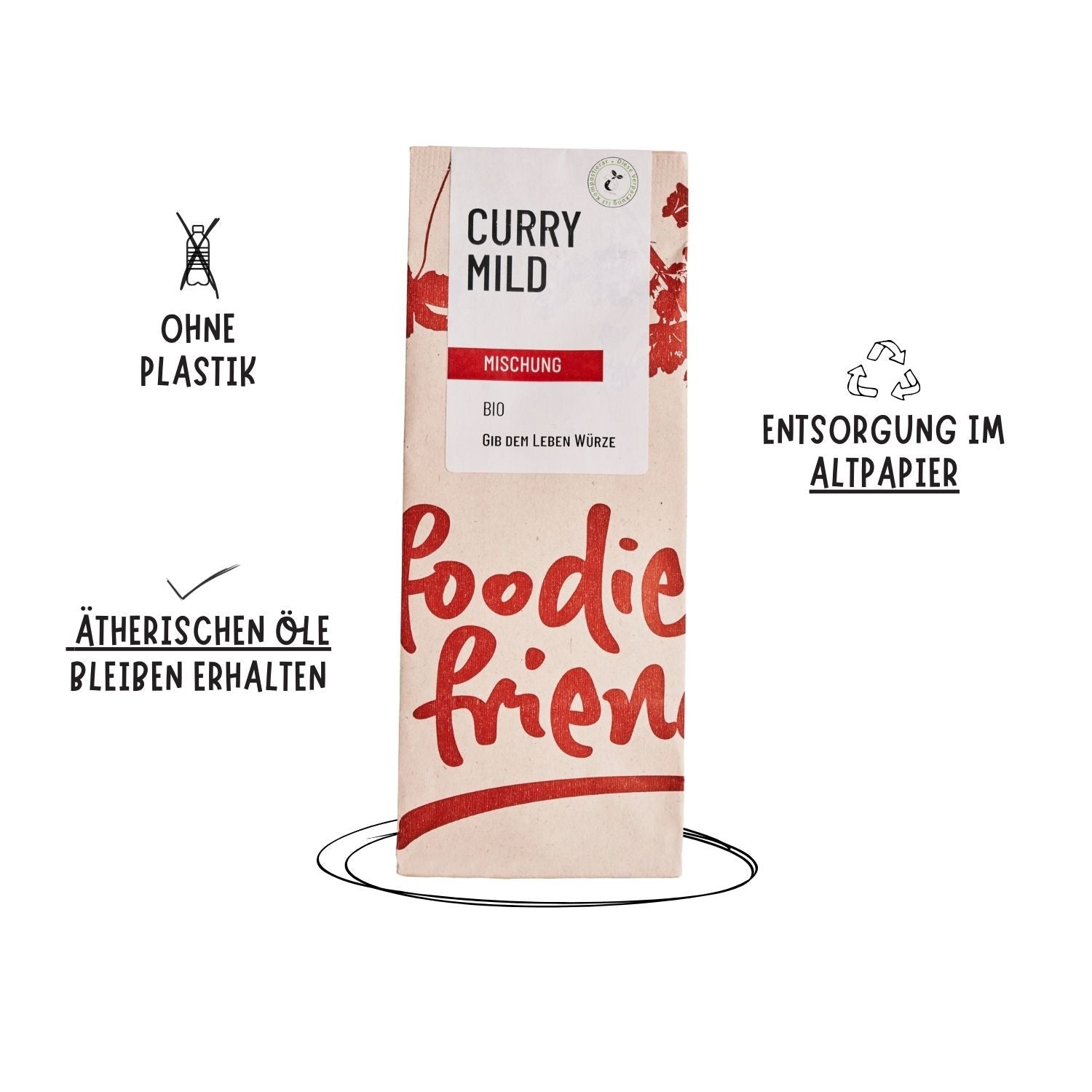Curry - die Gewürzmischung, bei der jede Familie ihre eigene Zusammensetzung hat. Unsere Gewürzmischung besteht aus 16 verschiedenen hochwertigen Biogewürzen. Bei so vielen duftenden Aromen, wähnt man sich schnell auf einer exotischen Schlemmerreise. Es besticht durch einen intensiven, aber milden Geschmack, wie man sich ein Currypulver wünscht.