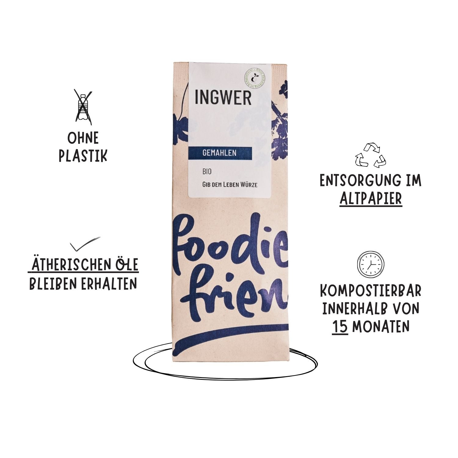 Unsere Tüten sind Cellulose und Papier (hergestellt aus pflanzlichen Resten der Lebensmittelproduktion).Diese ist vollständig kompostierbar und wenn Du nicht die Möglichkeit hast, kannst Du sie über die Papiertonne entsorgen.