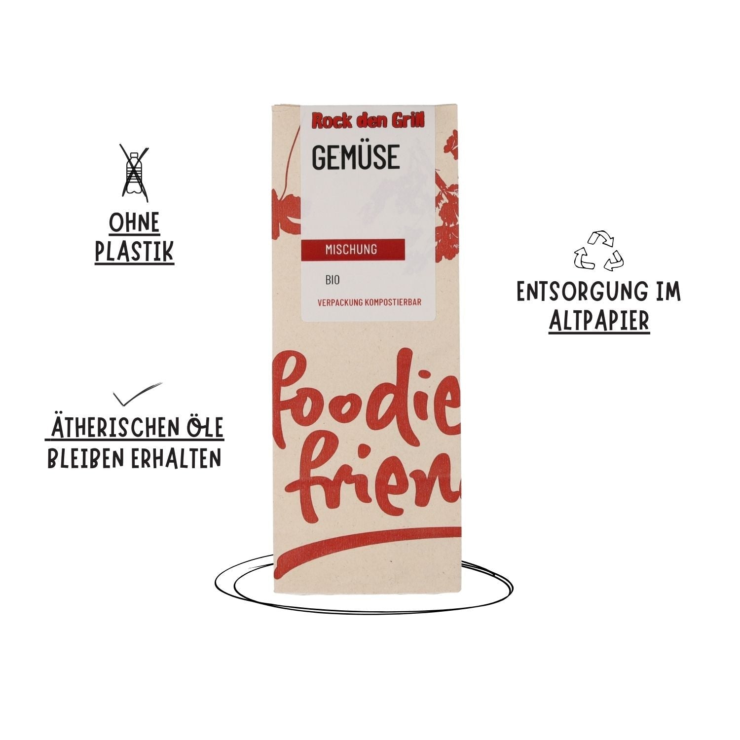 Gegrilltes Gemüse, ein Hochgenuss für alle die das Grillen lieben. Verfeinert mit einer raffinierten Mischung mediterraner Kräuter. Auch sehr gut geeignet für frische Salate.